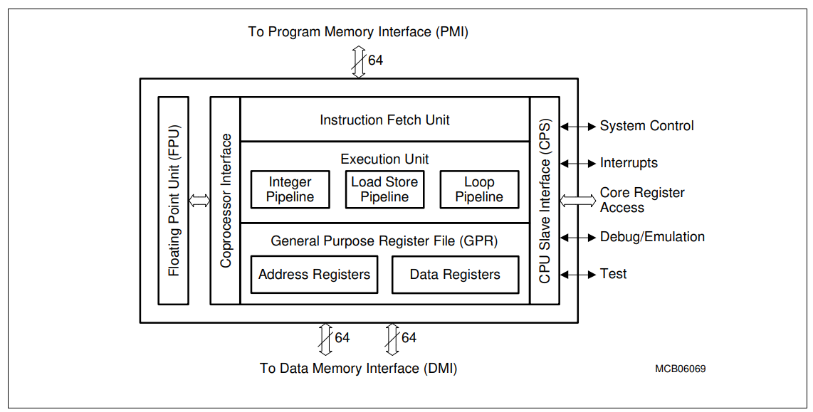 The CPU comes with a variety of high-performance features, which include a 32-bit load store architecture, 4 Gbyte address range (232), 16-bit and 32-bit instructions for reduced code size, as well as lists with various data types and data formats used in connection with the CPU deployment.