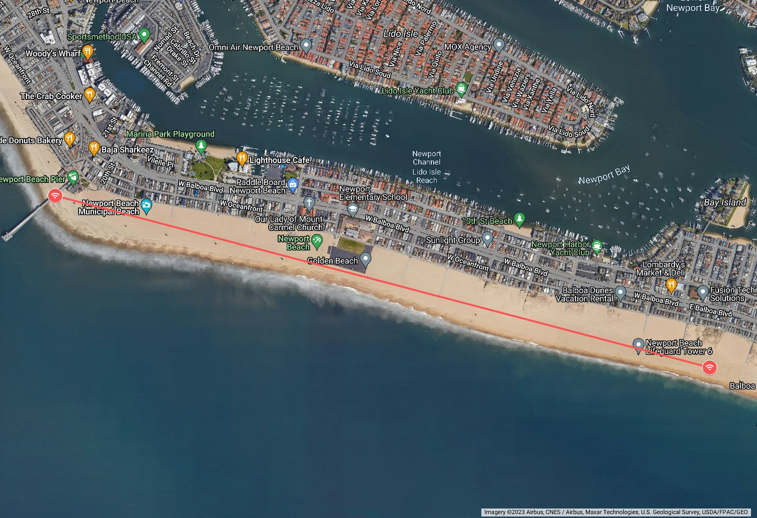 Testing is performed at Newport Beach, CA, to get a clear line of sight, and less environment radio noise.