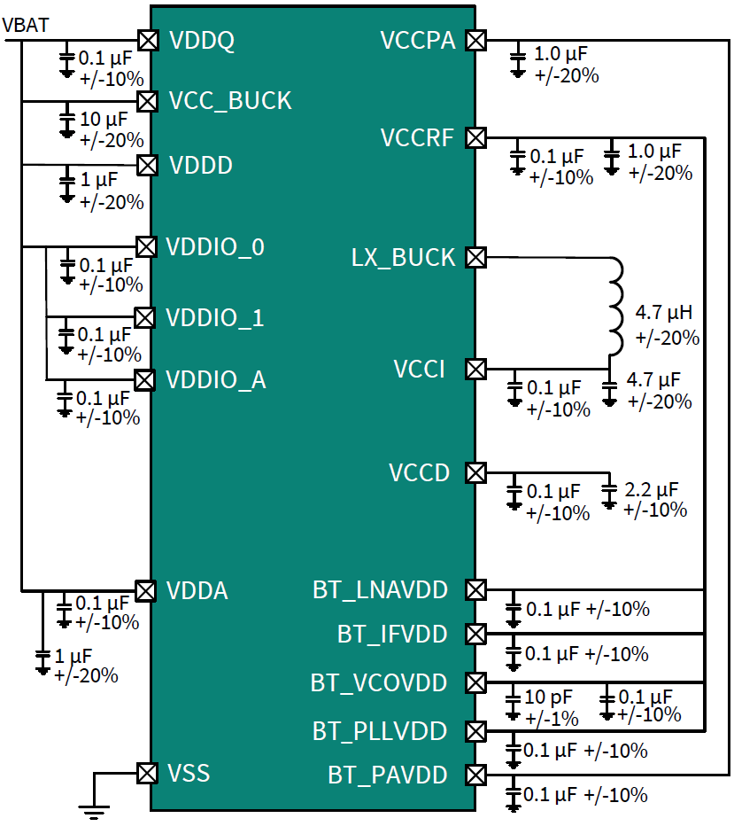 mA RX (LE 1 Mbps) current with 3.0 V supply and using internal buck converter